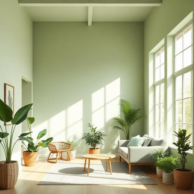 An interior design showcase featuring eco-friendly paints and finishes. Soft sage green walls create a calming, nature-inspired atmosphere. Every material […]